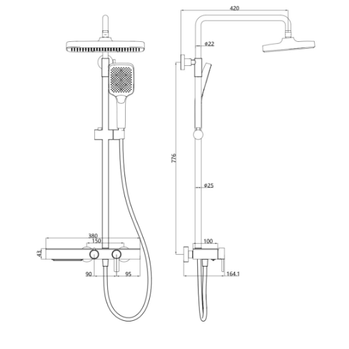 AALTO 1107GM Rain Shower Set (Gun Metal Finish)